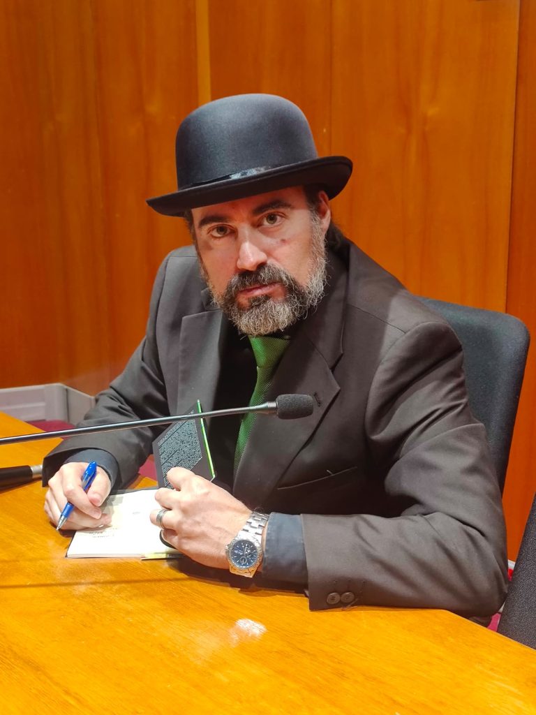 Mr. BOINAS, FIRMANDO UN EJEMPLAR, CON MI PERMISO, EL DÍA DE LA PRESENTACIÓN.